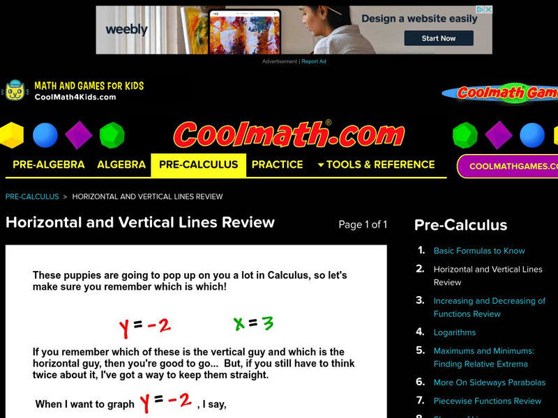 Coolmath: Horizontal and Vertical Lines