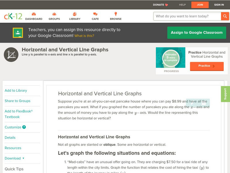 Ck 12: Algebra: Horizontal and Vertical Line Graphs
