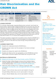 The CROWN Act (Creating a Respectful and Open World for Natural Hair) is the subject of the lesson that asks groups to research the stories of five different women and share their insights in a jigsaw activity. Participants then craft...