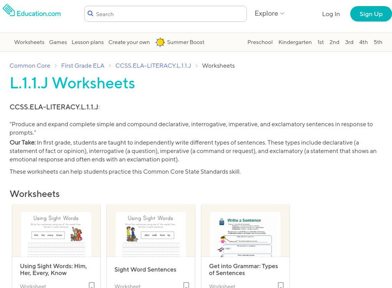 [Free Registration/Login Required] In first grade, students are taught to independently write different types of sentences. These types include declarative (a statement of fact or opinion), interrogative (a question), imperative (a...