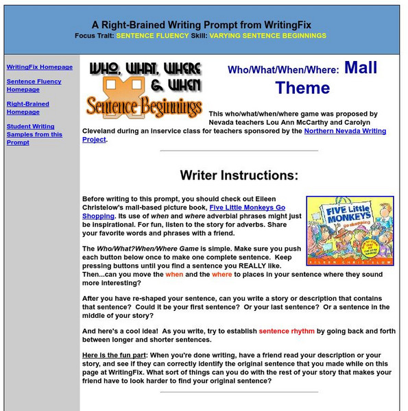 In this lesson, Eileen Christelow's picture book, Five Little Monkeys Go Shopping, is used as the mentor text for its use of adverbial phrases. After several exposures to the mentor text, students will use click the buttons with the...