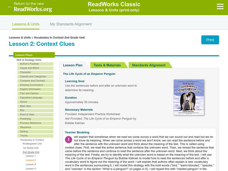 Read Works: Vocabulary in Context 2nd Grade Unit: Context Clues