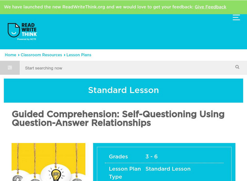 Online lesson introduces young scholars to the concept of self-questioning, assisting them in an understanding of question-answer relationships that should improve their reading comprehension skills. In-depth study will lead to improved...
