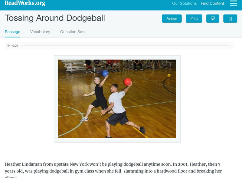 [Free Registration/Login Required] This passage shares the pros and cons associated with the game of dodgeball. This passage is a stand-alone curricular piece that reinforces essential reading skills and strategies and establishes...
