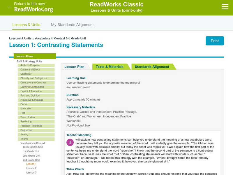 Read Works: Vocabulary in Context 3rd Grade Unit: Contrasting Statements