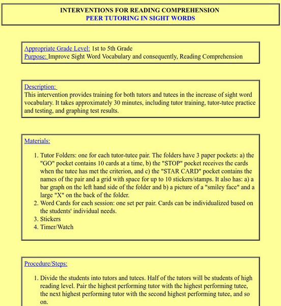 Michigan State University: Intevention for Reading: Peer Tutoring in Sight Words