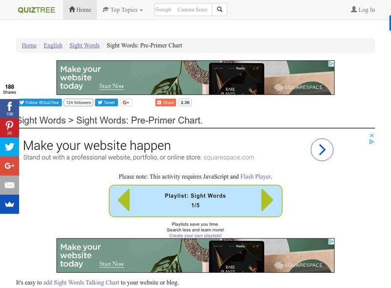 Students' have access to a pre-primer chart that provides an audio of each word when clicked.