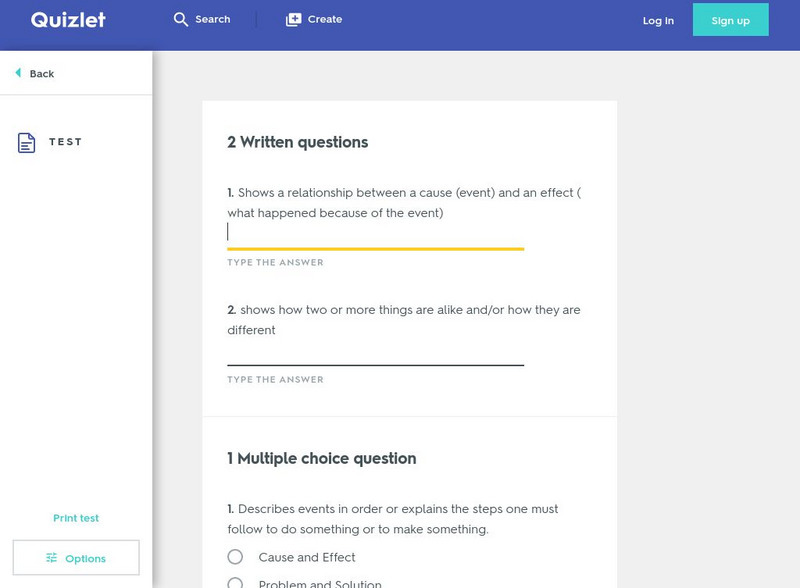 Quizlet: 4th Grade Voc. Text Structure: Match