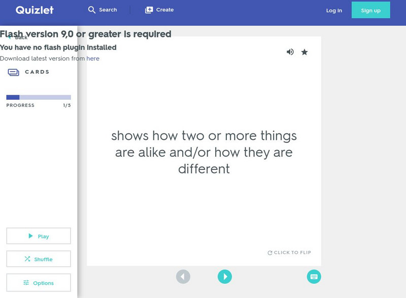 This interactive set of flashcards helps students to learn the terms and definitions for types of text structure, organizational patterns, and keywords and graphic organizers for the types of text structures.