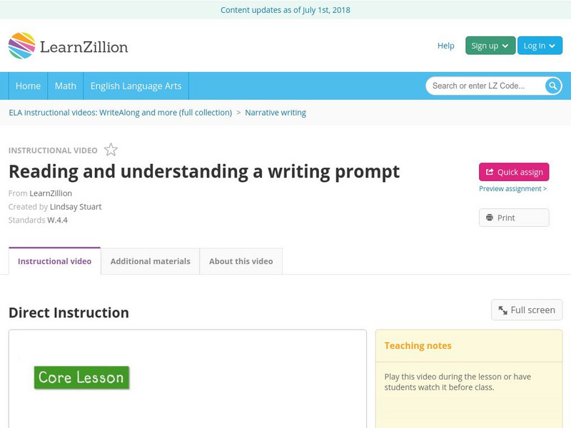 Learn Zillion: Reading and Understanding a Writing Prompt