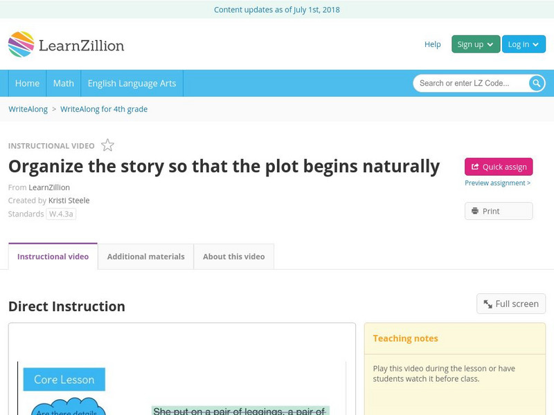 Learn Zillion: Organize the Story So That the Plot Begins Naturally