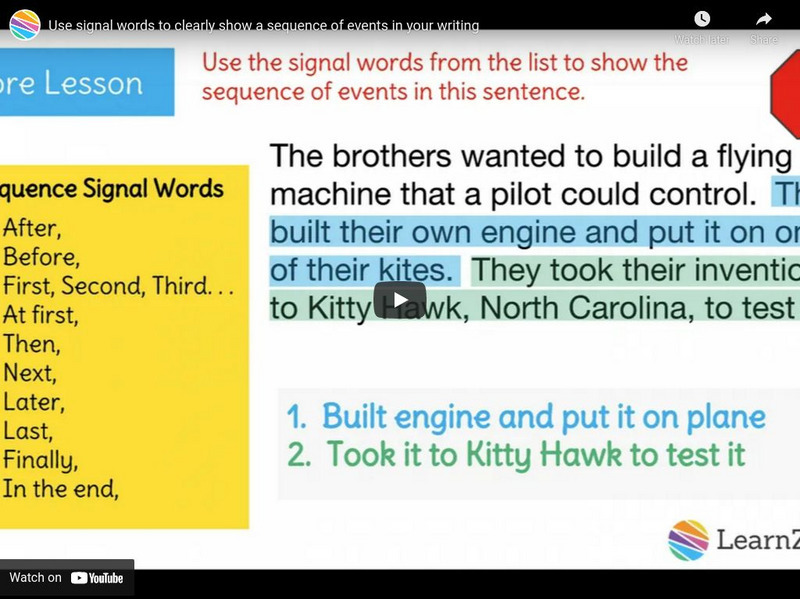Learn Zillion: Use Signal Words to Clearly Show a Sequence of Events in Writing