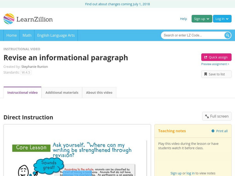 Learn Zillion: Organize Ideas in Informational Writing Using Headings