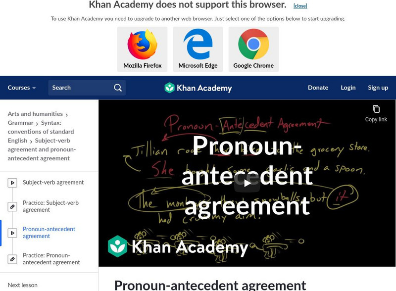 Get an in-depth look into pronouns and antecedents with an informative video that offers definitions and examples. Also included is an interactive pop quiz, a review, and tips in order to steer clear from vague pronouns.
