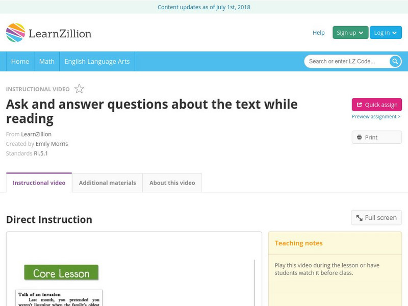 Learn Zillion: Ask and Answer Questions About the Text While Reading