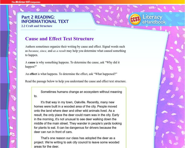 Mc Graw Hill: Part 2 Reading: Informational Text: Cause and Effect Text Structure