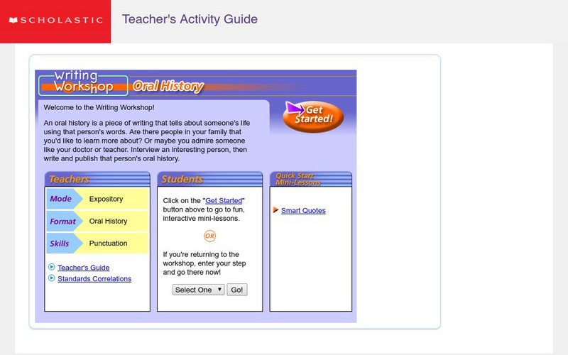 Great online lesson that takes students through the entire writing process- from prompt to publishing. Online or printable versions of each step are available. The prompt asks students to interview people and write about their oral...