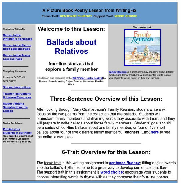 In this lesson young scholars will develop a poem while thinking about a special place. They will develop their ideas using strong word choice and figurative language. After the students have completed their ideas, they will be linked...
