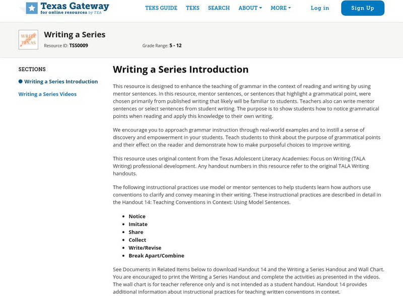 Texas Gateway: Writing a Series