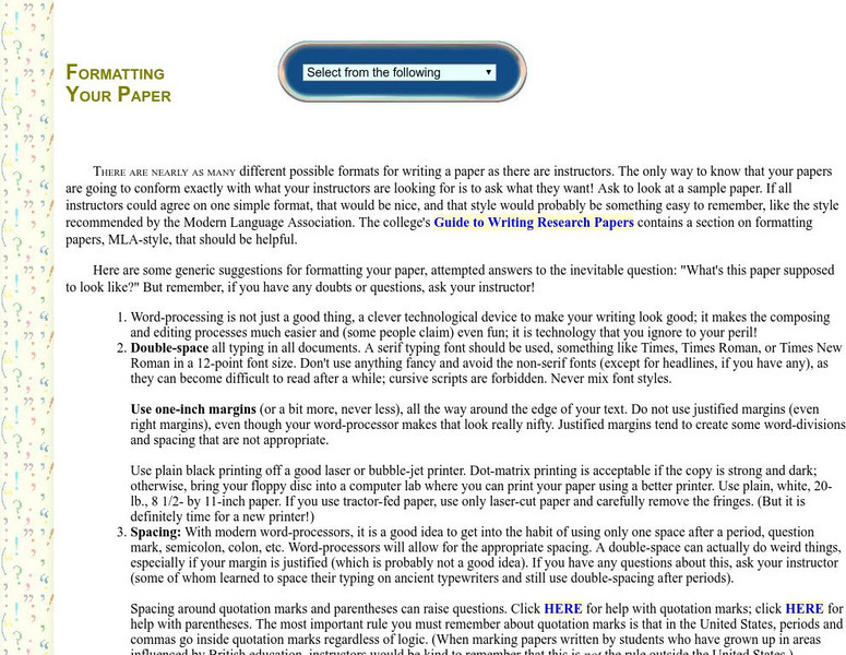 Guide to Grammar and Writing: Formatting Your Paper