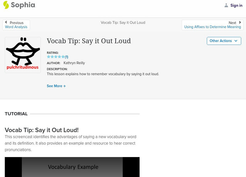 This video lesson offers a tip for learning new vocabulary words by saying the word and its definition aloud. This stimulates the brain and activates prior knowledge which helps you remember the word. It also covers what to do if you...