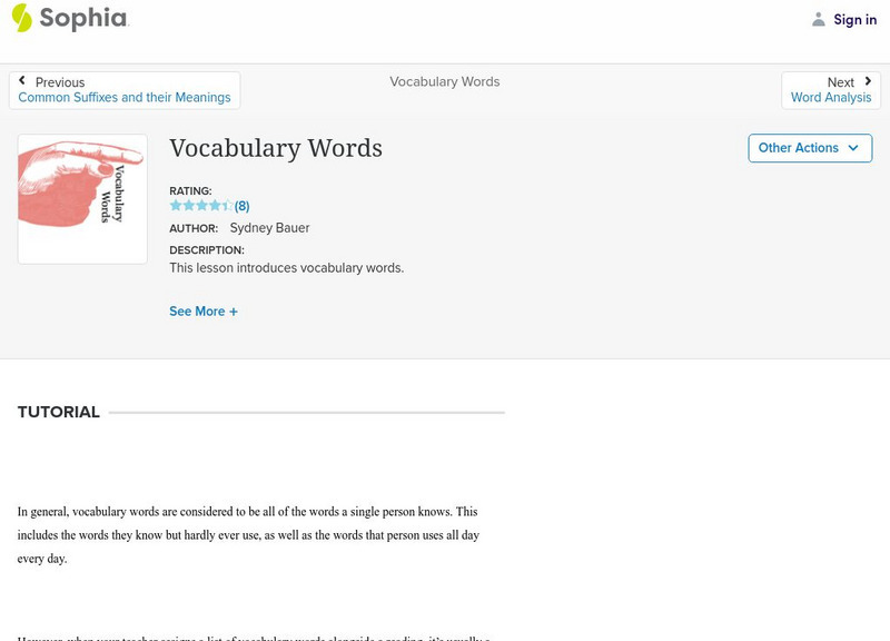 Texas Gateway: Vocabulary: Understand New Vocabulary Within Context