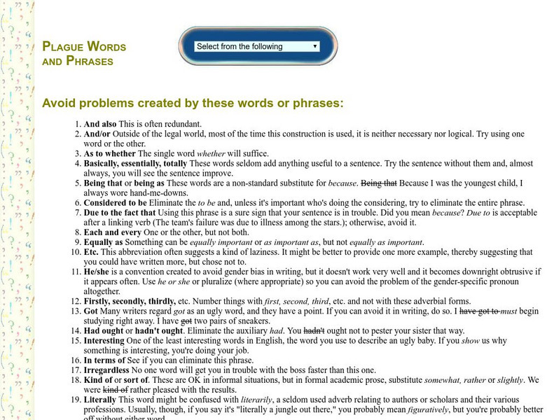 "Avoid problems created by these words or phrases." Examples: And also, As to Whether, and lots more.