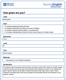 Go green! Scholars survey their classmates to determine how green they are and then write a report to summarize their findings. Finally, pupils agree on five changes they can make in their lives to help the environment.