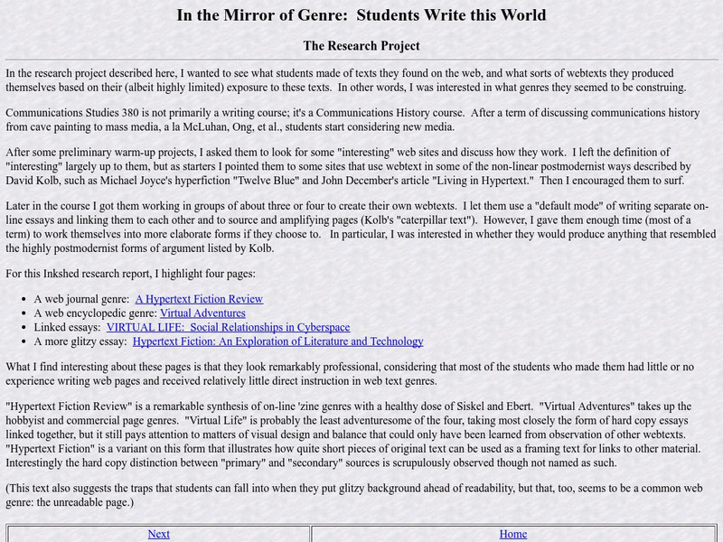 A teacher's research project page that explores his students' journal responses to various literary works. Basic and limited entries.