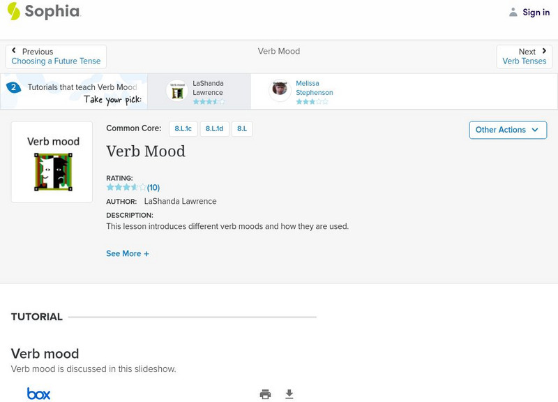 A slideshow explaining different verb moods and how they are used. It is 1 of 2 in the series titled "Verb Mood."