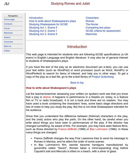 Wealth of information about the play "Romeo and Juliet" intended for standardized test preparation in the United Kingdom. Contains detailed information about some key scenes, some character analysis, as well as advice for writing about...