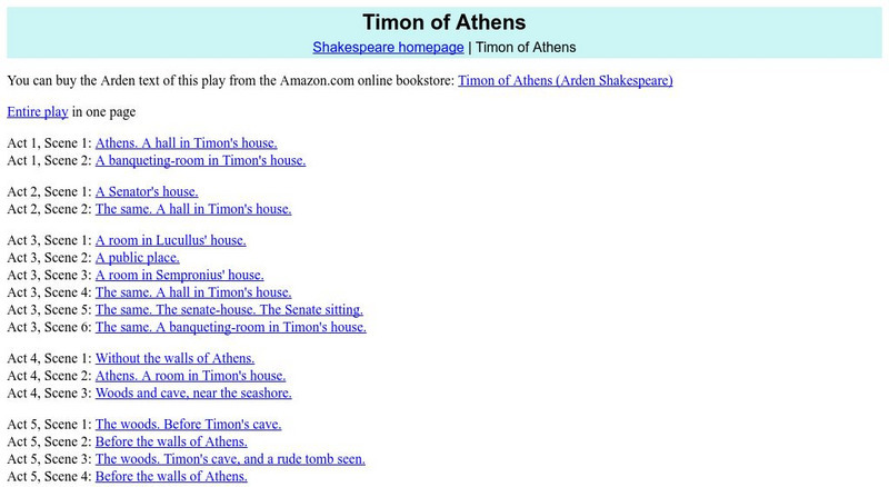 Read the complete text to Shakespeare's "Timon of Athens". With act and scene selection.
