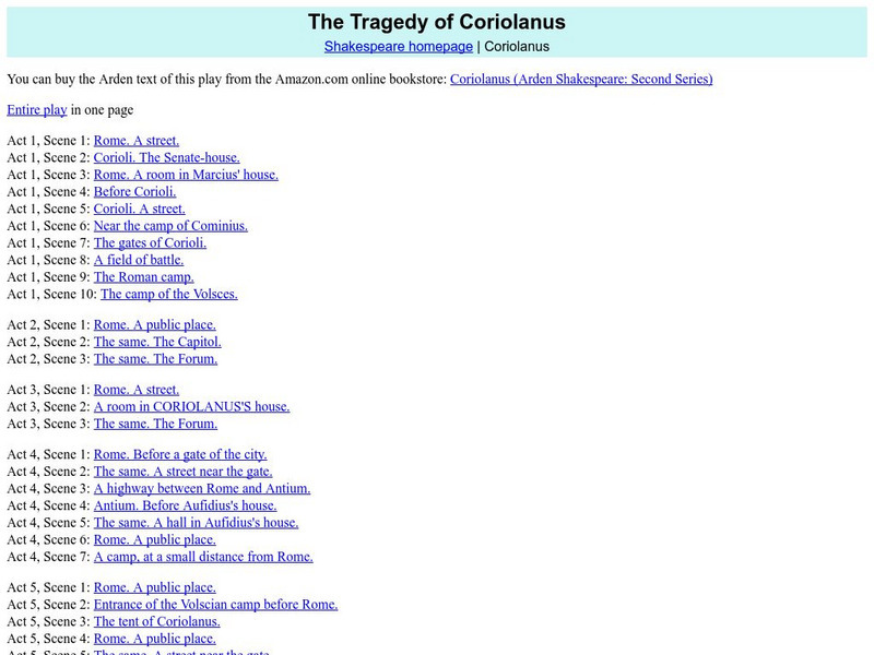 The complete text of William Shakespeare's "The Tragedy of Coriolanus" divided by acts and scenes, or view the entire play in one page.
