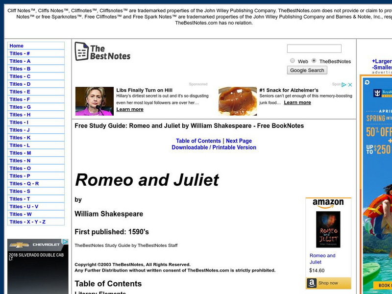 The Best Notes: Romeo and Juliet by William Shakespeare