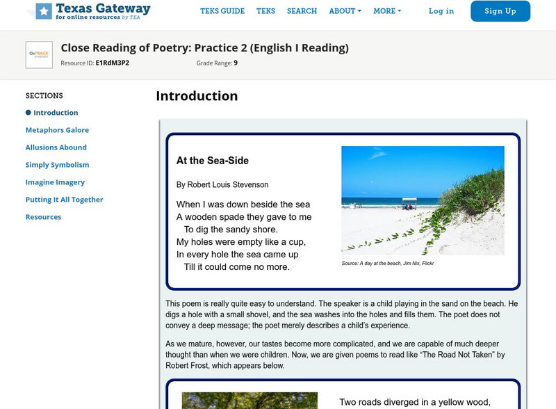Texas Gateway: Close Reading of Poetry: Practice 2 (English I Reading)