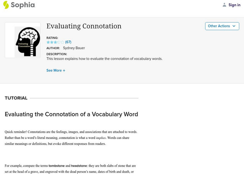 This lesson focuses on evaluating the connotation of a vocabulary word. It defines connotation and gives an example. It details three steps: read the word in context, determine the tone of the overall reading, and compare the tone with...