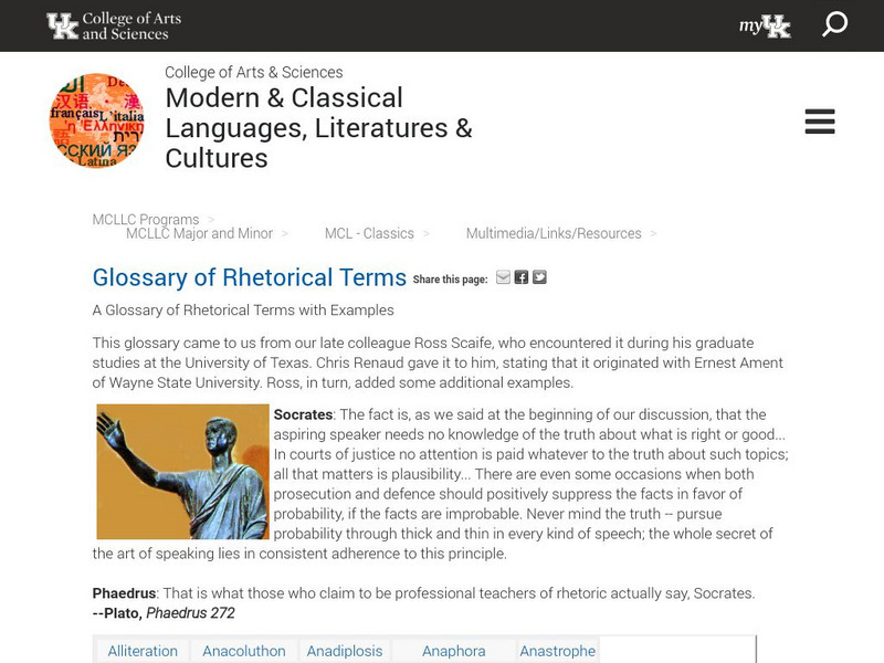 Kentucky Classics: A Glossary of Rhetorical Terms With Examples