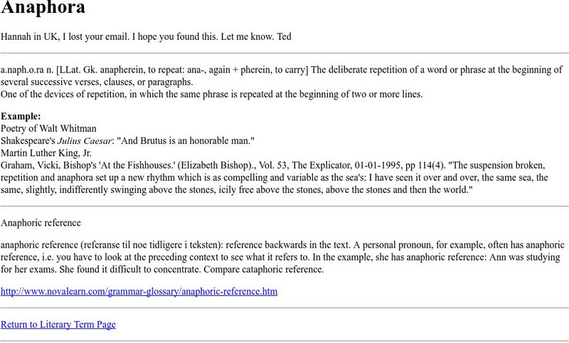 Cyber English (By Ted Nellen): Anaphora