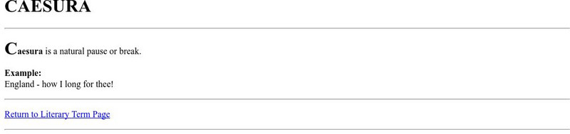 This is a glossary entry for the term "Caesura" including a definition and an example.