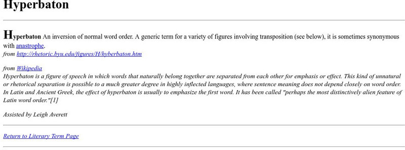 This is a glossary entry for the figure of speech "Hyperbaton" including definitions from two sources.