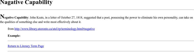 This is a glossary entry for the term "Negative Capability" including the definition and a link to an example.