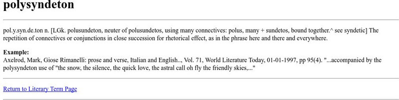 This is a glossary entry for the term "Polysyndeton" including a definition and literary examples.