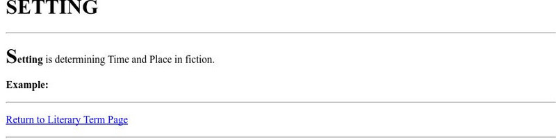 This is a glossary entry for the term "Setting," the time and place a story takes place.