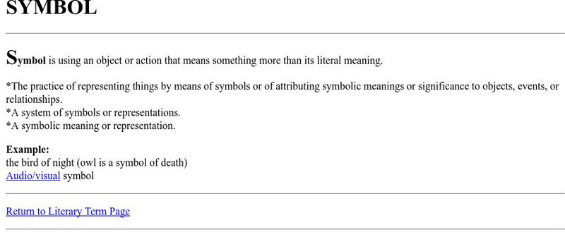 This site provides a very detailed definition of the term but does not give any examples. Part of a larger site of literary terms.