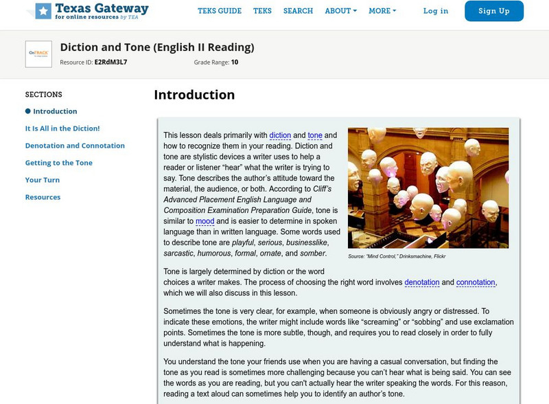 Texas Gateway: Literary Text: Diction and Tone