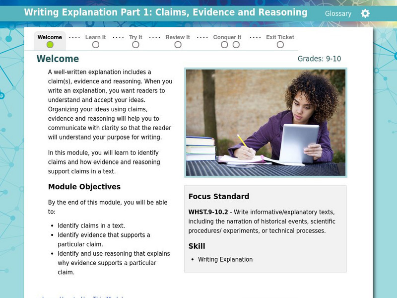 Thinkport: Writing Explanation Part 1: Claims, Evidence and Reasoning