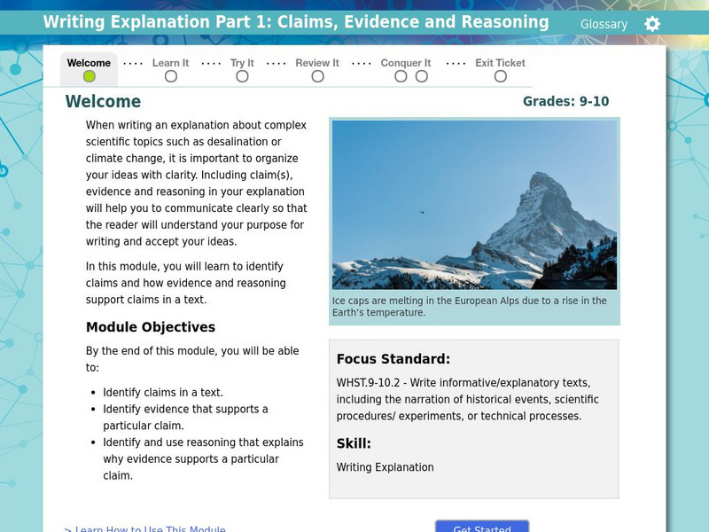 In this module, students will explore how claims, evidence and reasoning are used to write an effective explanation. Students will read an article that addresses the question of whether climate change is now confirmed after record high...