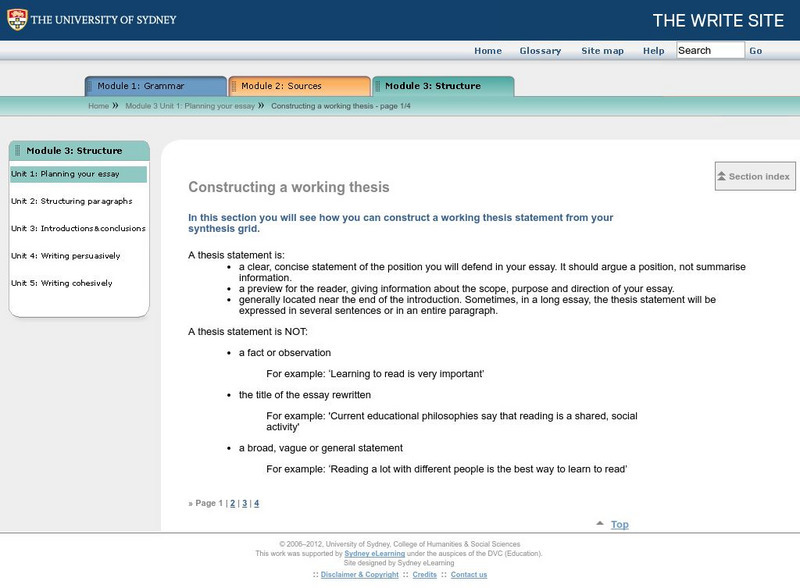 The Write Site: Constructing a Working Thesis