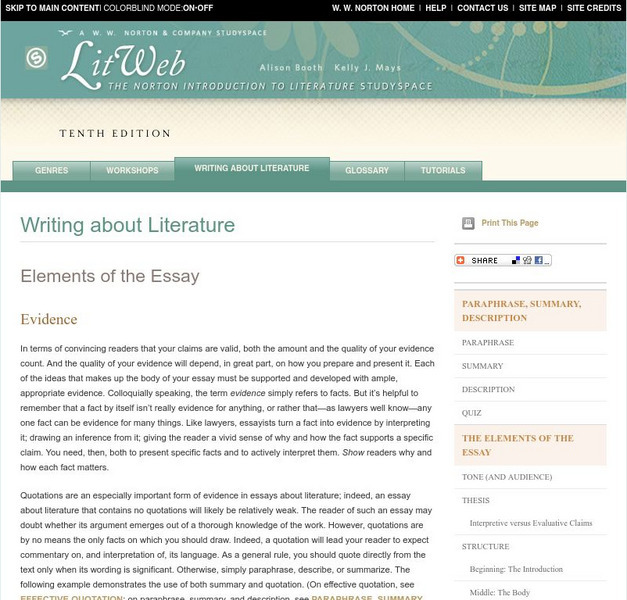 W.w. Norton & Company: Elements of the Essay: Evidence