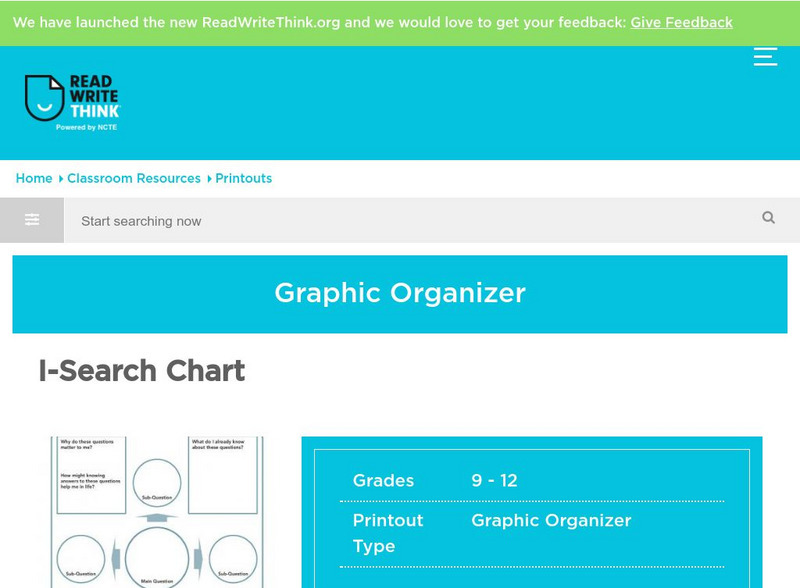 A printable inquiry search graphic organizer to help students organize questions and sub questions while working through the research process. Directions on how to use this type of graphic organize as well as lists of teaching ideas and...